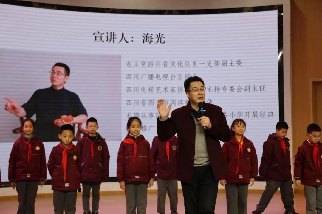 “生命長江 由我守護”主題宣講,在成都市北新實驗小學(xué)的宣講嘉賓是農(nóng)工黨四川省文化總支一支部副主委、四川廣播電視臺主持人海光,金堂縣金山小學(xué)的宣講嘉賓是賴姓群老師。在成都市北新實驗小學(xué),面對孩子們,海光老師講解了長江的三大源頭。從格拉丹東雪山的冰川融水,到沱沱河、當(dāng)曲河、楚瑪爾河各自的獨特風(fēng)貌,每一處源頭都承載著大自然的神奇與奧秘。那冰峰雪嶺間涓涓細流的起始,便是長江生命的最初律動。海光老師介紹了社會各界為保護長江所采取的積極措施,帶著同學(xué)們了解長江生態(tài)圈的珍稀動物。